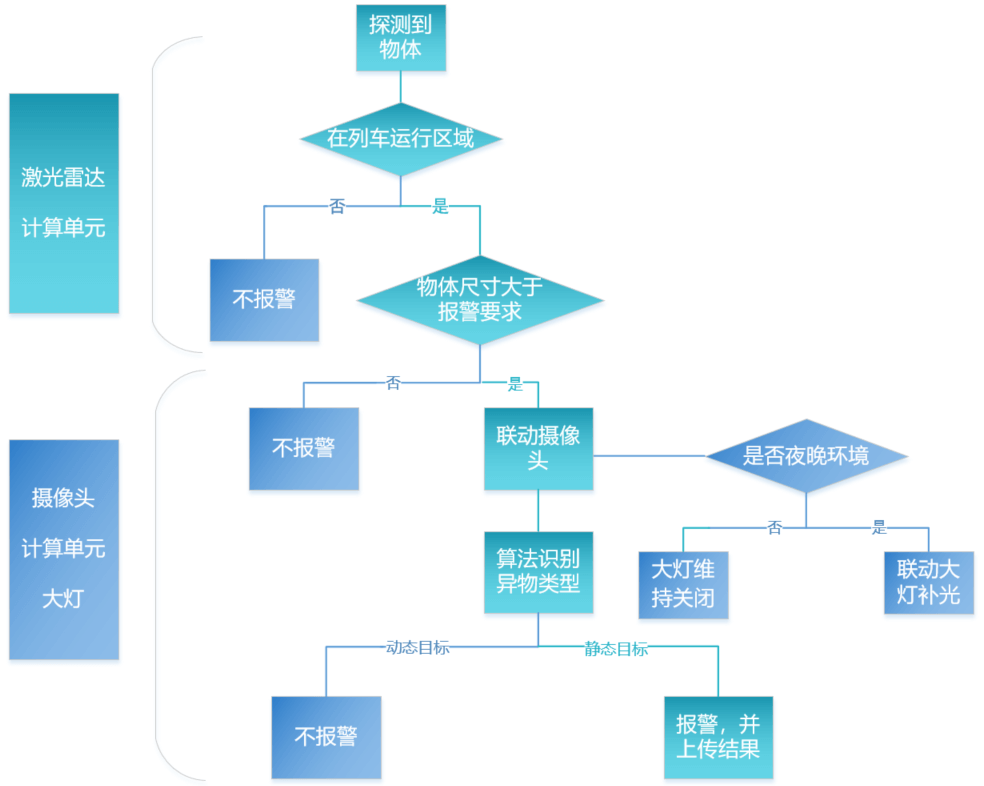 覽沃激光雷達(dá)憑借其優(yōu)異的探測(cè)能力和環(huán)境適應(yīng)性,在異物探測(cè)領(lǐng)域嶄露頭角,新的列車(chē)主動(dòng)障礙物檢測(cè)系統(tǒng)是一種針對(duì)軌道障礙物人、行李箱、鐵鞋……等,障礙物的提前預(yù)防事故,檢測(cè)列車(chē)行駛距離范圍的障礙物的主動(dòng)式安全預(yù)警系統(tǒng)。采用覽沃激光雷達(dá)+高清攝像頭(有些會(huì)增加毫米波雷達(dá))的方案,進(jìn)行列車(chē)前方一定范圍內(nèi)的視頻及點(diǎn)云采集,然后通過(guò)傳感器與主機(jī)之間的通信,傳輸視頻流到主機(jī),通過(guò)主機(jī)接收視頻流后對(duì)視頻算法處理,判斷前方范圍內(nèi)是否有障礙物,以及障礙物的類(lèi)別,然后傳到車(chē)輛中,輸出報(bào)警信號(hào),進(jìn)行直觀的預(yù)警提示,從而有效預(yù)防事故的發(fā)生。