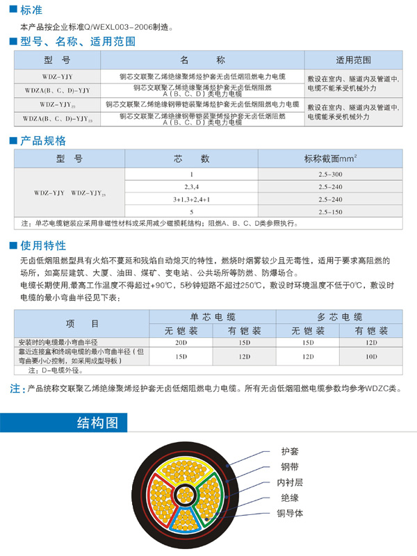 銅芯無鹵低煙阻燃電力電纜